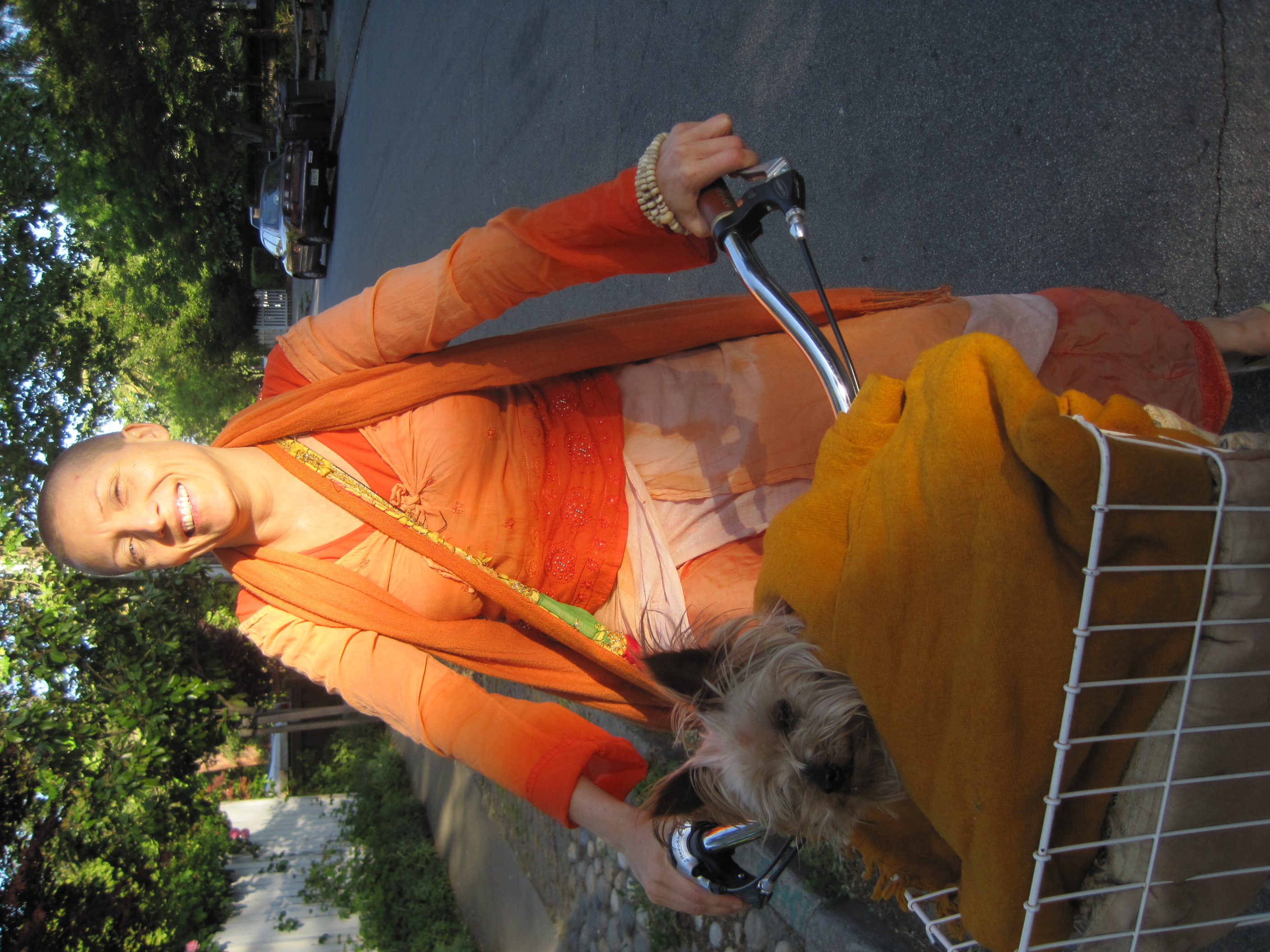 Oh, there you are…on your second lap around–you’ve come back as Swami (long bunch of syllables). The hip swami, who gave away all her stuff 3 years ago, car, possessions and her pooch.