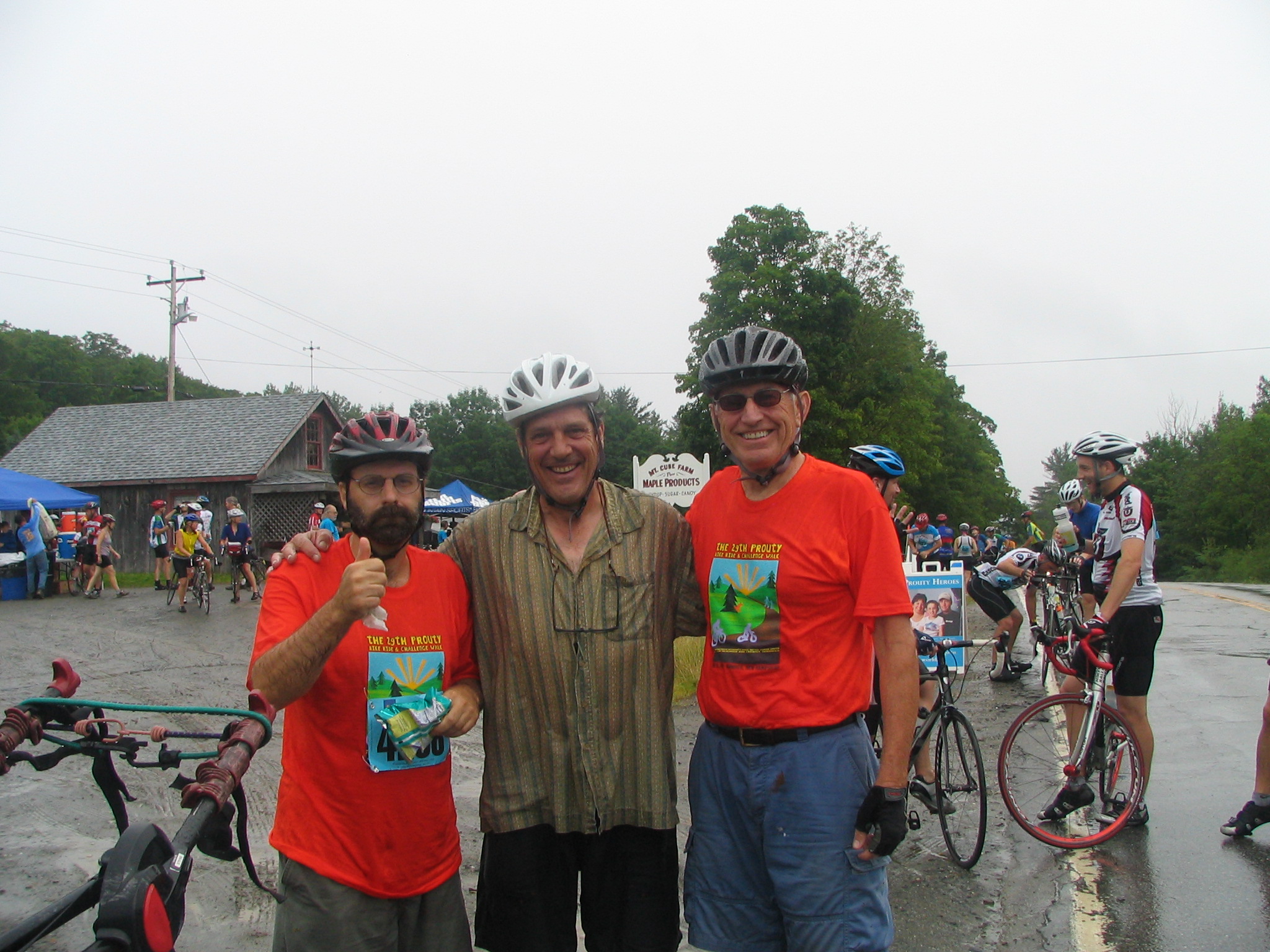 Funny you should write today. I’m doing a 100 mile cancer research benefit ride tomorrow (with a team of friends called “Eyes on the Prize”), in what looks like a whole day of thunderstorm. I’ve done this ride for years, but don’t fit in very well. I ride my only bike, which is a heavy old Hardrock mountain bike with bolted-on baskets (for sandwiches, beer, tools, etc). I don’t have any bike clothes, so I wear shorts and a shirt and my reading glasses and my work boots. I’ve been on a bike six times since the last Prouty ride (July ‘09) and have trained as usual: put air in the tires, check the derailleurs, oil the chain, and stop bumming cigarettes the week before.