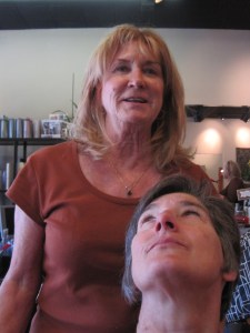 The scissors’ pleasing pulling went on for forty minutes… pinches of gray hair dropping into my satiny lap and all around the chair.