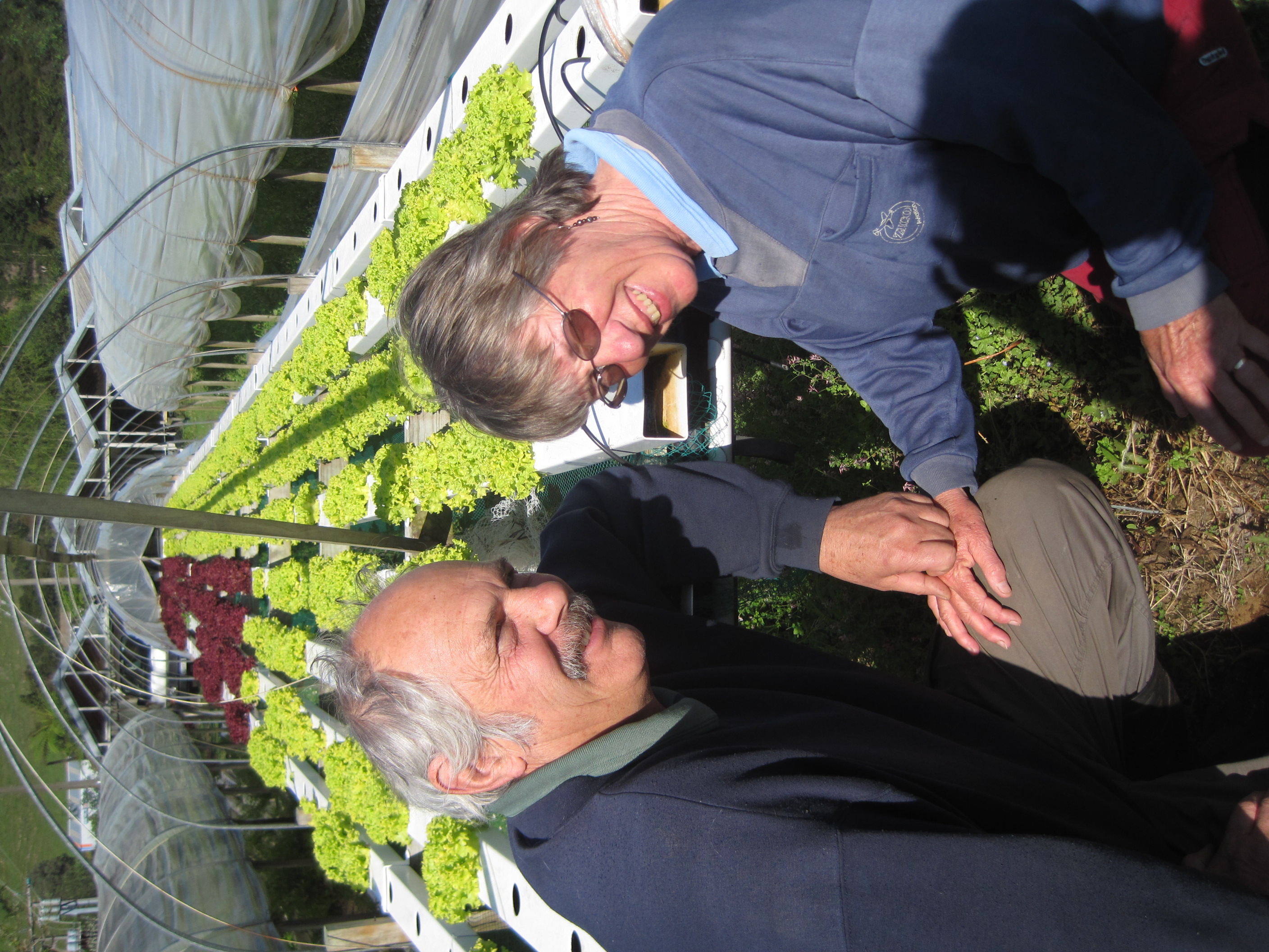 Her rellys are Marg and Murrray Gilmour, the hydroponic lettuce farmers of the scenic peninsula. They have rows and rows of plastic-covered greenhouses with trays that have holes in ’em and drainage runnels and the colors–deep burgundy purple and chartreuse green–make your eyes light up and your camera say howdy.