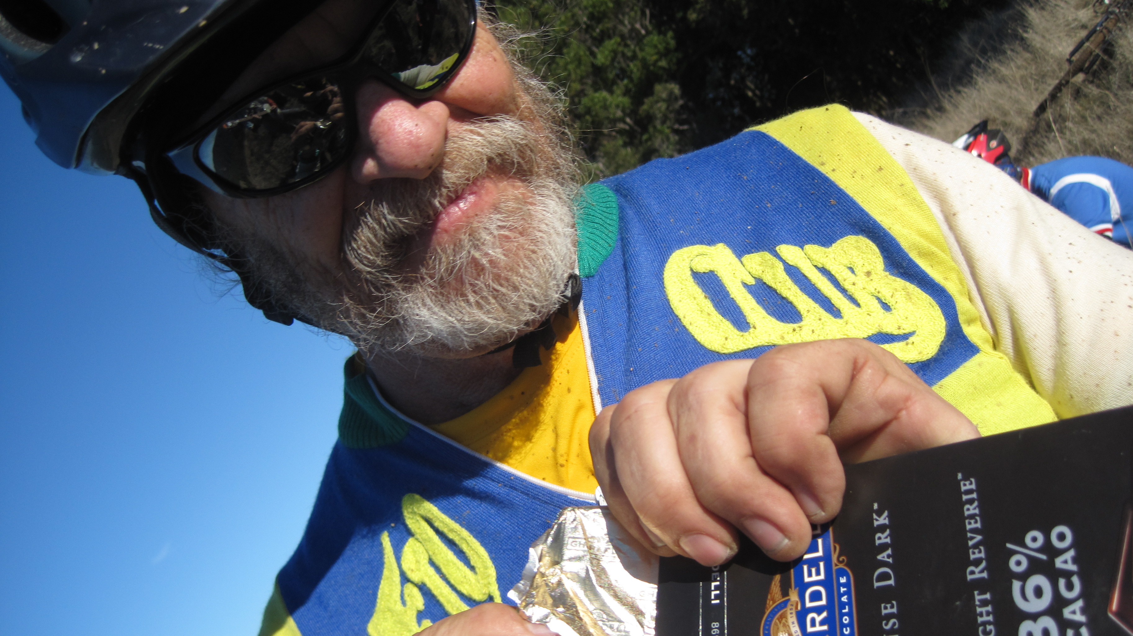 28 degrees (Fahrenheit) when I rolled out at a little after seven. Met Gary Fisher and his son Nick, along with Dirt Rag publisher Maurice Tierney and Jacquie Phelan, and we rode to the dirt together. Nick and Gary must have had something to do, because they didn’t wait at any of the normal break spots.