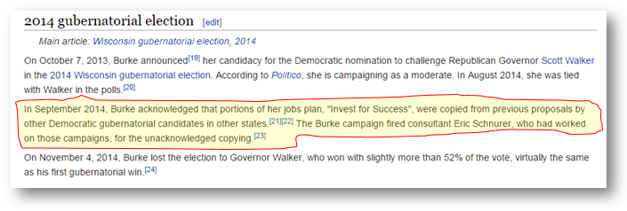 At this point, if there is anything TREK would like to do to make things right for me and WOMBATS, “I’ll be happy to consider” a palliative offer. Talking to the higher ups like the Burke family  probably wouldn’t get me anywhere, though. The following image pulled from Wikipedia hints that plagiarism might be company policy–Mary Burke’s family owns Trek. mary burke